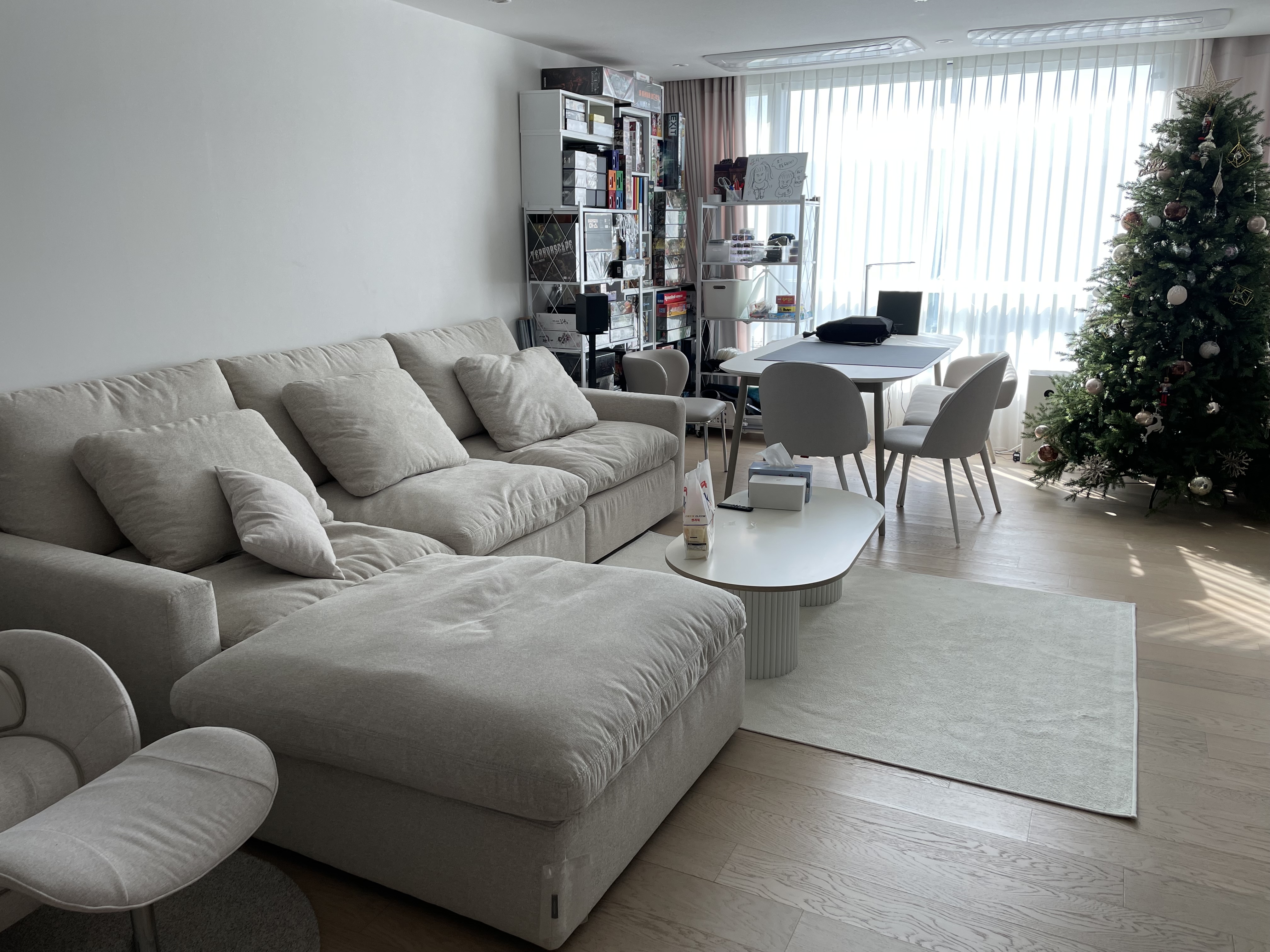 일단 장소.. 나까지 6명의 인원이 앉아서 떠들 공간이 필요하다. 우리 집 거실은 그 역할을 하기에 충분했으나 한 가지 고민이 있었다.